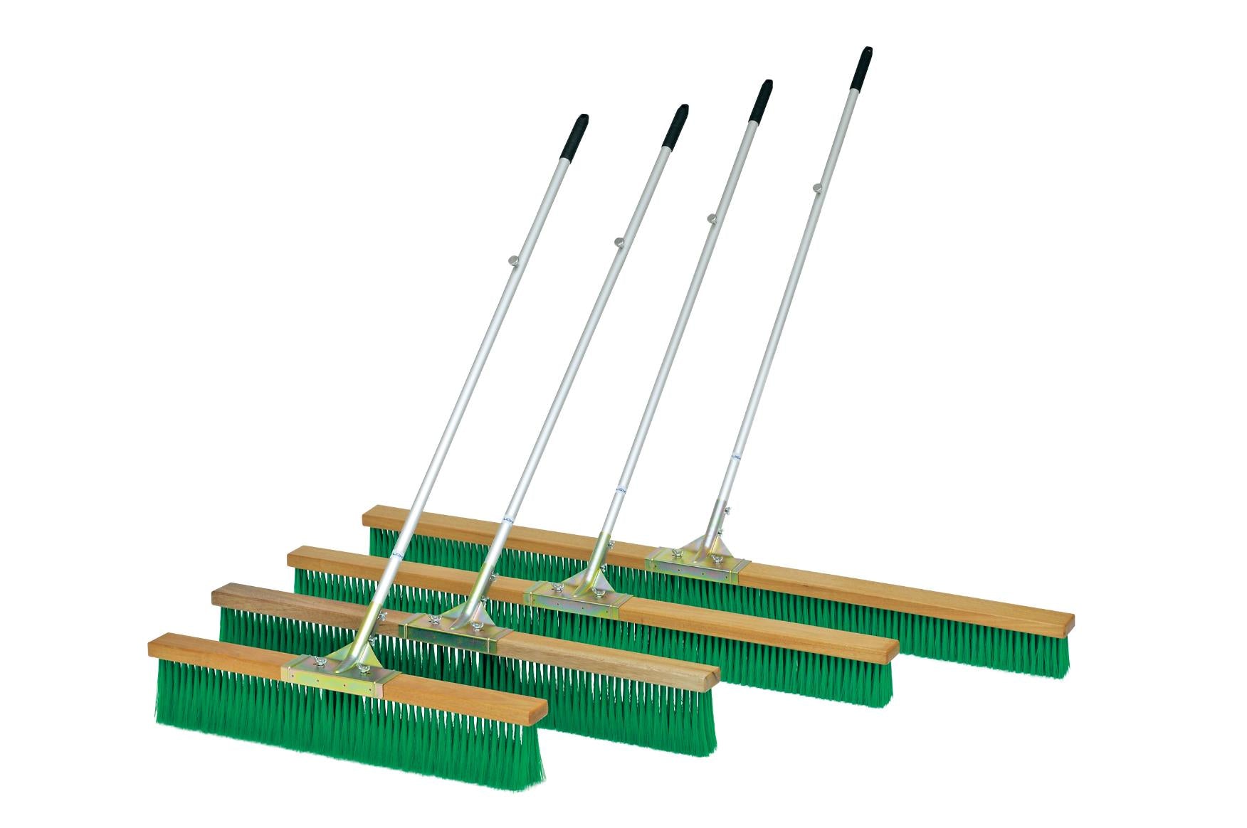 ブラシ材質:PVC(毛の長さ90・120-約14cm、150・180-約10cm)、柄材質:アルミパイプアルマイト仕上(サイズ25.4mm×135cm)●柄固定フック付